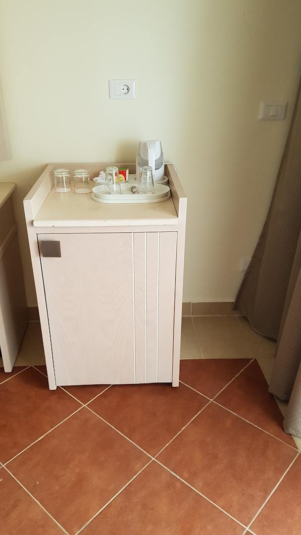 ZimmerEin Wasserkocher war vorhanden. Leider fehlte das Kaffeepulver, um sich direkt nach dem Frühstück einen leckeren Kaffee zuzubereiten.