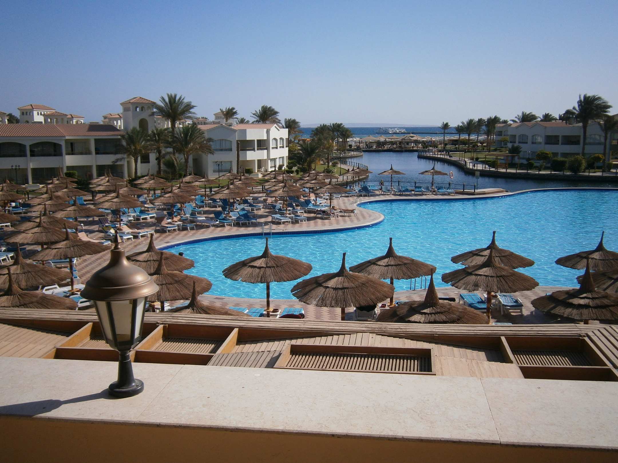 Von der Bar aus mit Blick auf Pool ,Lagune und Meer