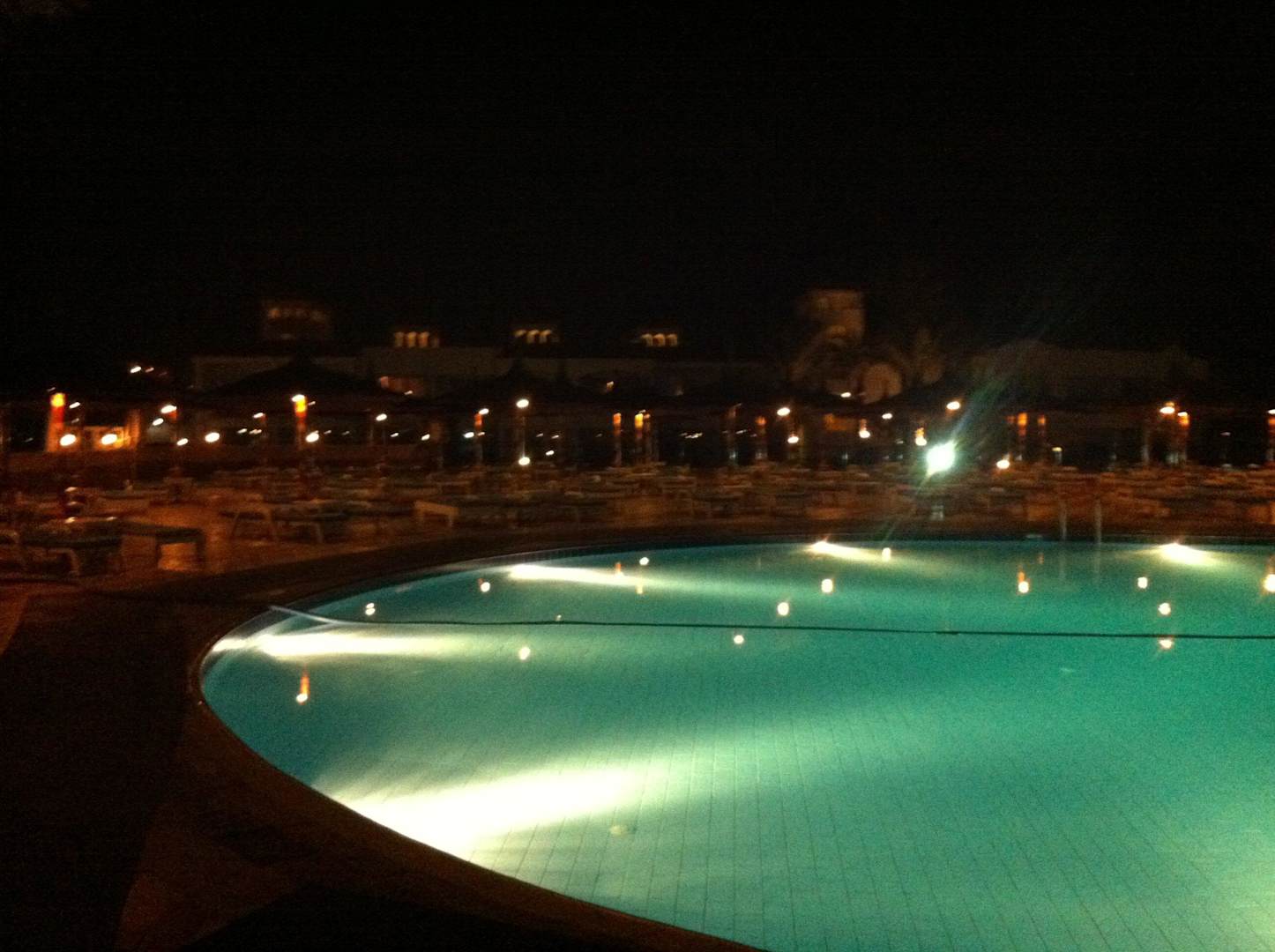 Beheizter Zentralpool bei Nacht.