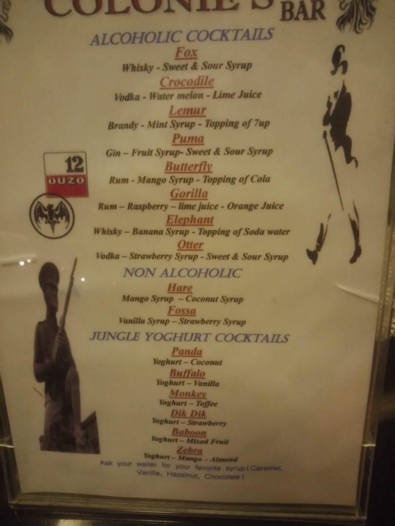 Cocktailkarte in Colonelbar