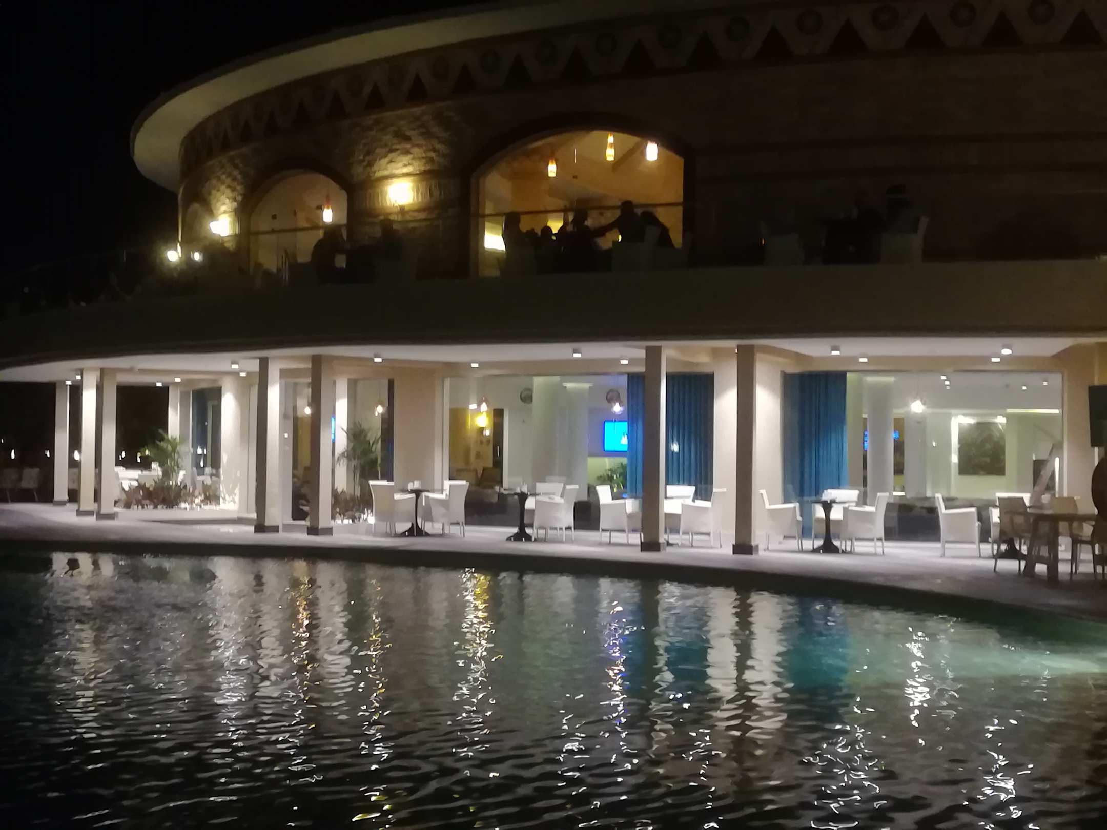 neue Lobbybar von außen (oben ist eine Terrasse und innen die Rezeption)
