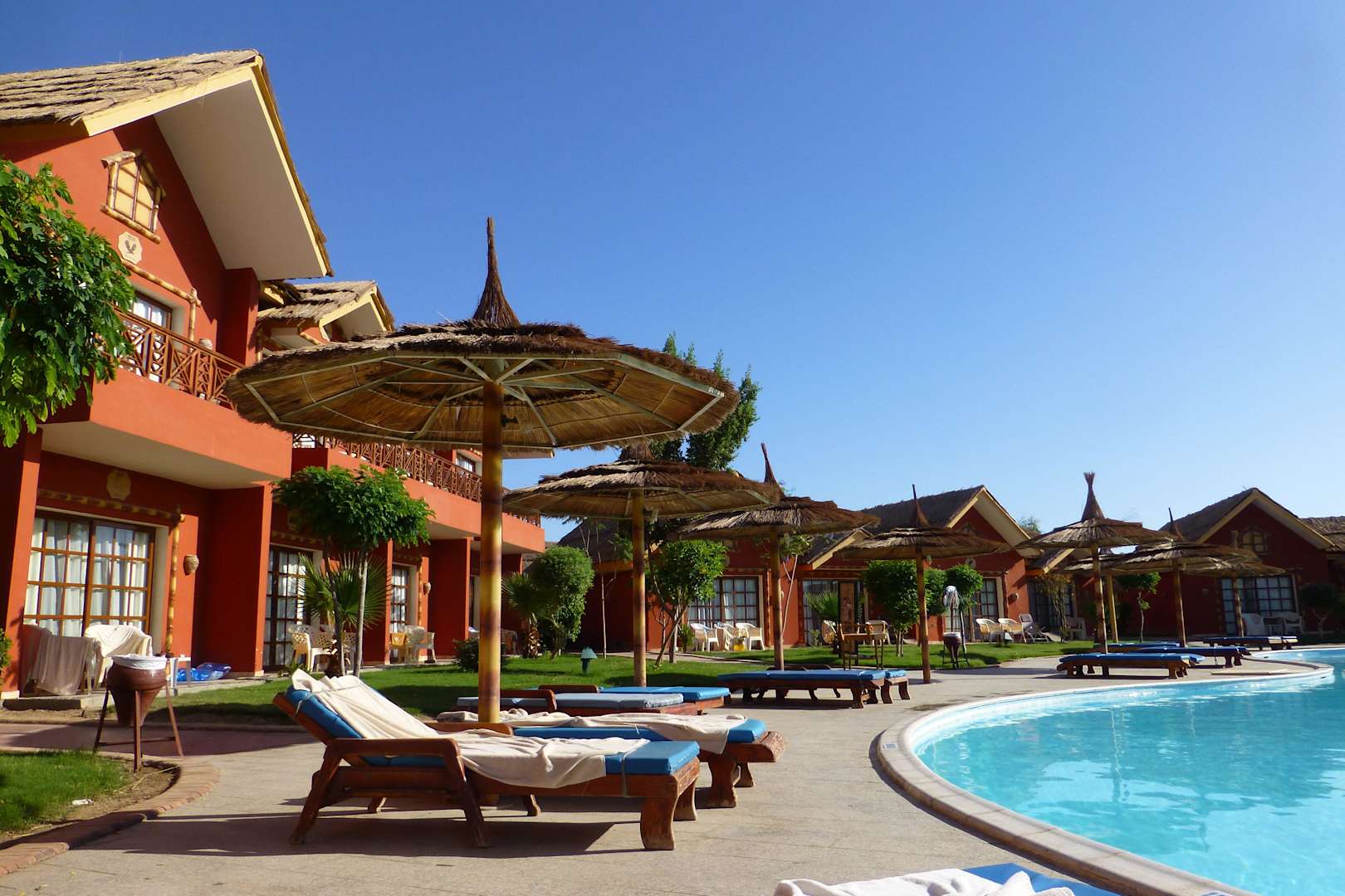 Blick von 2111/2112 auf Nachbarhäuser und Pool