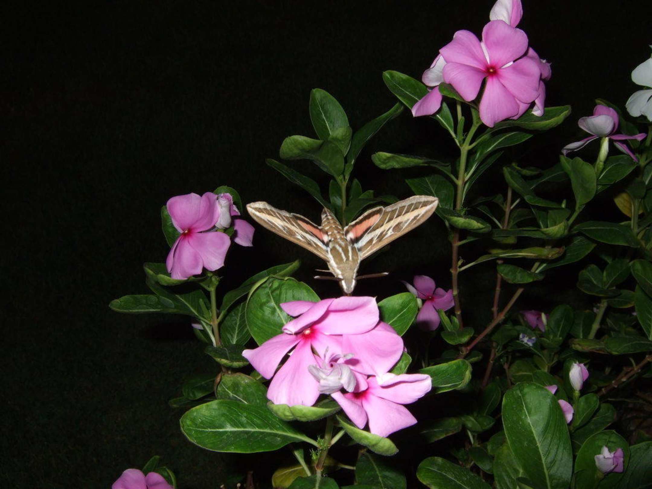 Diesen Schwärmer konnten wir an einem der Blumen im Garten entdecken. Die gibt es in Deutschland an Fliederbüschen übrigens auch ab und zu zu sehen.
