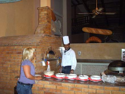 Frisches Brot und Pizza vor den Restaurants