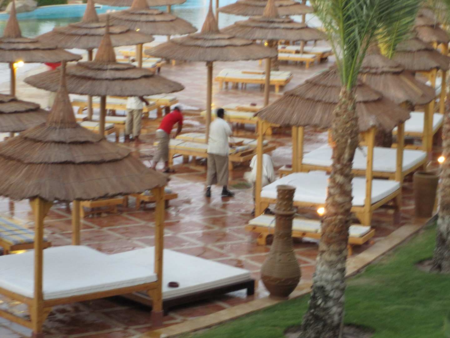 Ausblick vom Zimmer, Reinigungskräfte arbeiten...