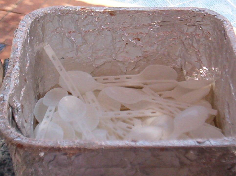 Dreckige Plastiklöffel fürs Eis