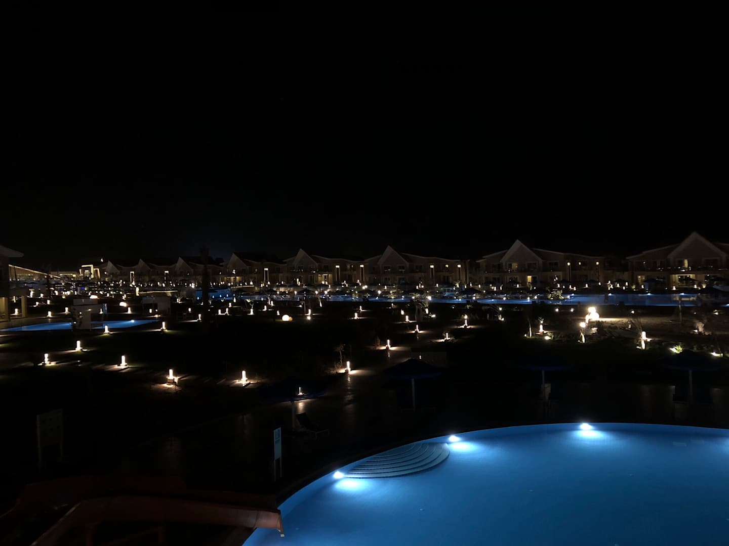 Hotelanlage bei Nacht