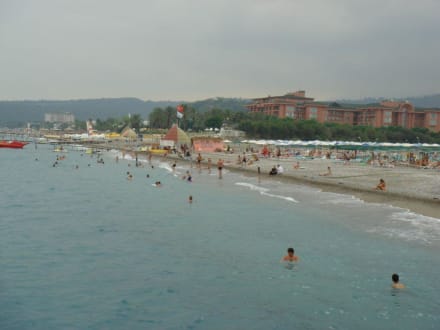Aufnahme vom Hotel eigenen Strand vom Steg des Nachbarhotels aus