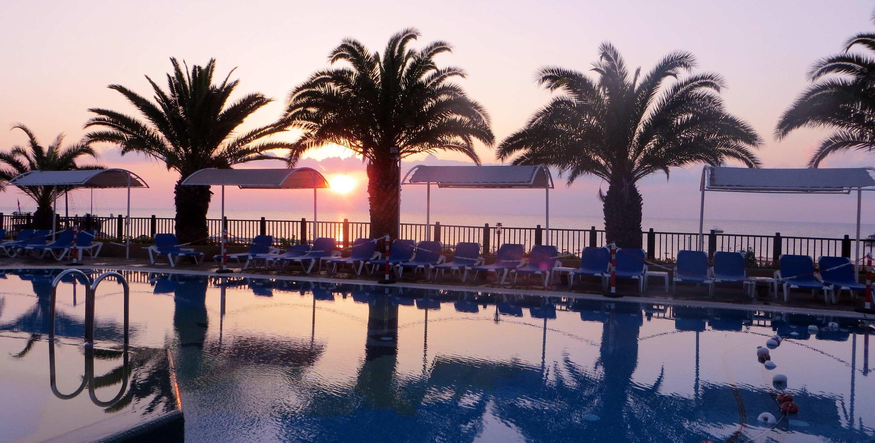 Sonnenaufgang am Poolanlage