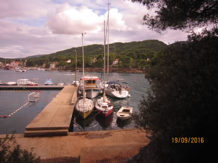 am Ende der Hotelbadebucht, dieser Steg immer Schiffe und das Taxi Boot geht von da