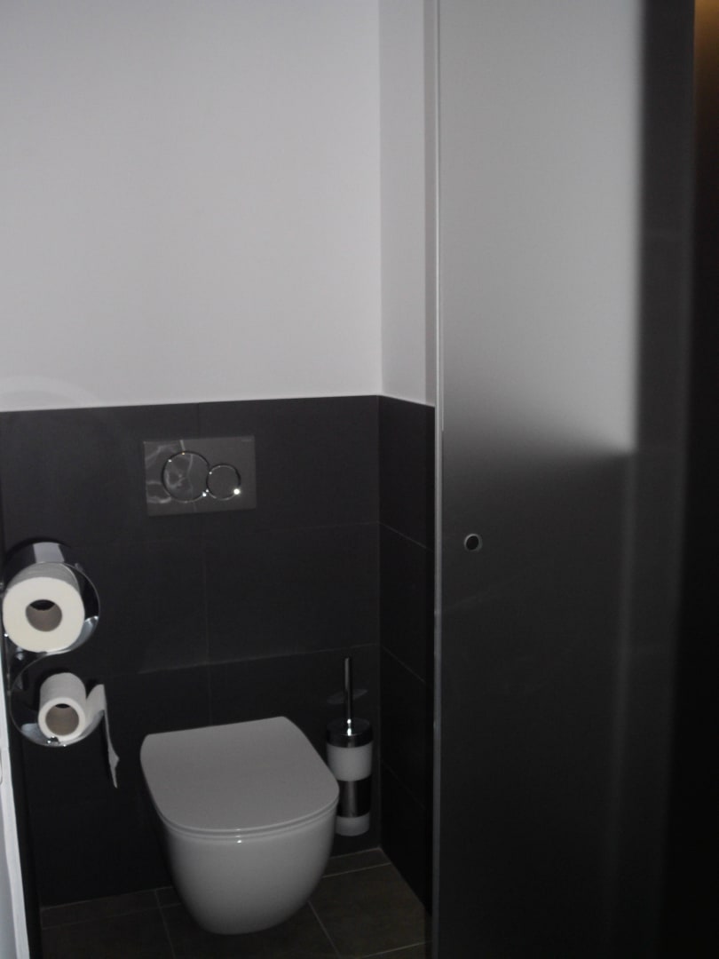 Bad/ Toilette - nur durch Milchglas-Schiebetür zu verschliessen