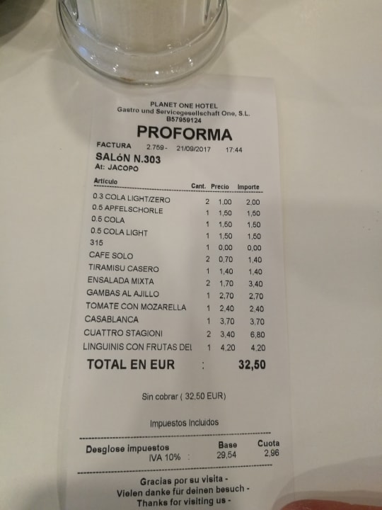 Restaurant Rechnung mit Premiumpreisen