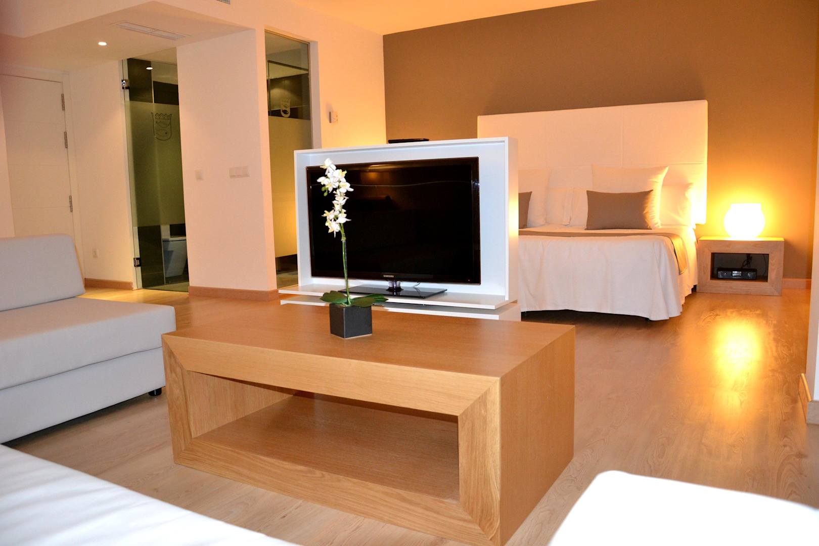 kombinierter Wohn-Schlafraum + "gläsernes" Bad