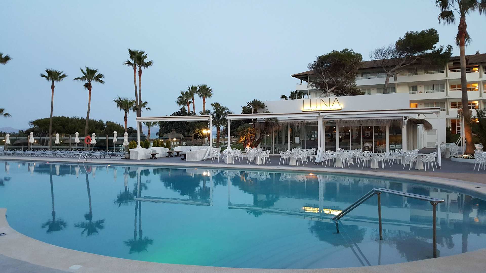 Pool mit Hotel im Hintergrund