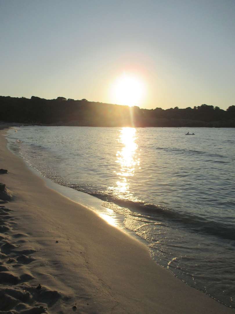 Der flache Sandstrand Arenal Son Saura ist in wenigen Minuten über einen Holzsteg erreichbar.