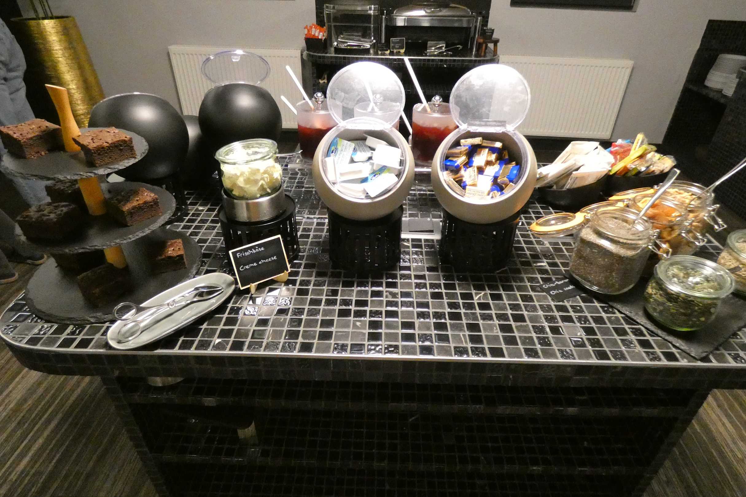 Butter,Magariene, Mameladen und Kuchen