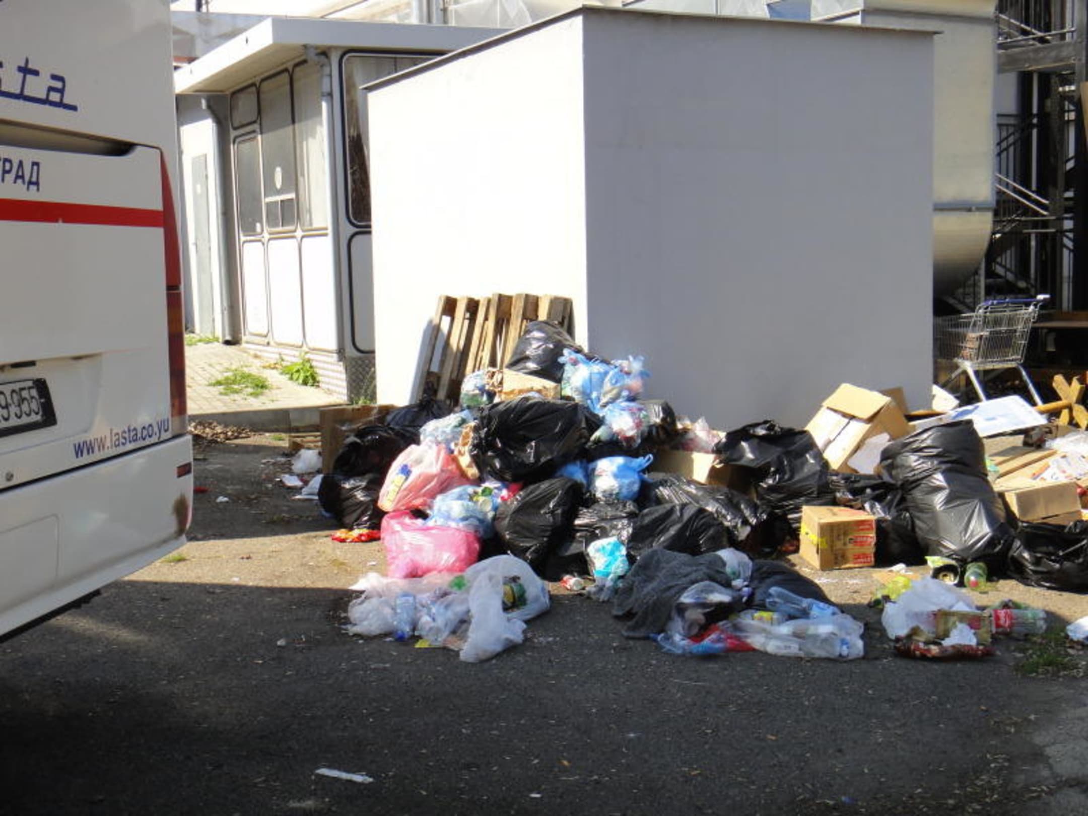 Hinterhof+Parkplatz des Hotels, wo der Müll einfach so gelagert wird. Dass es nicht lange dauert bis bei den Zuständen Ratten da sind, sollte klar sein.