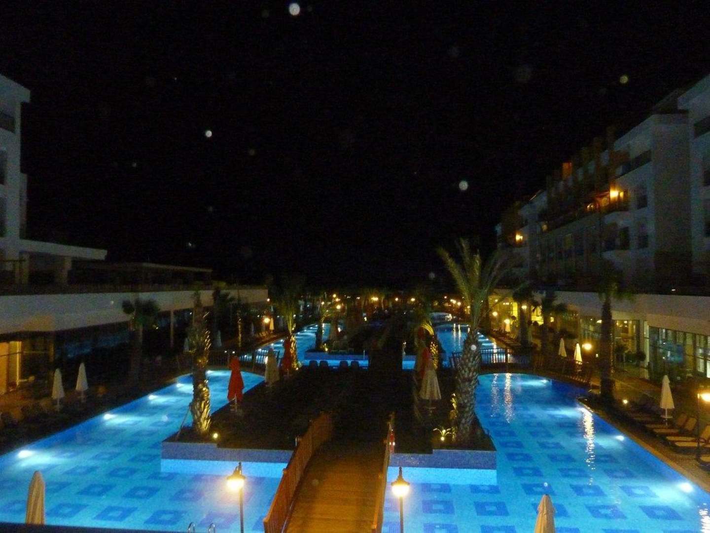 Abends Poolanlage beleuchtet