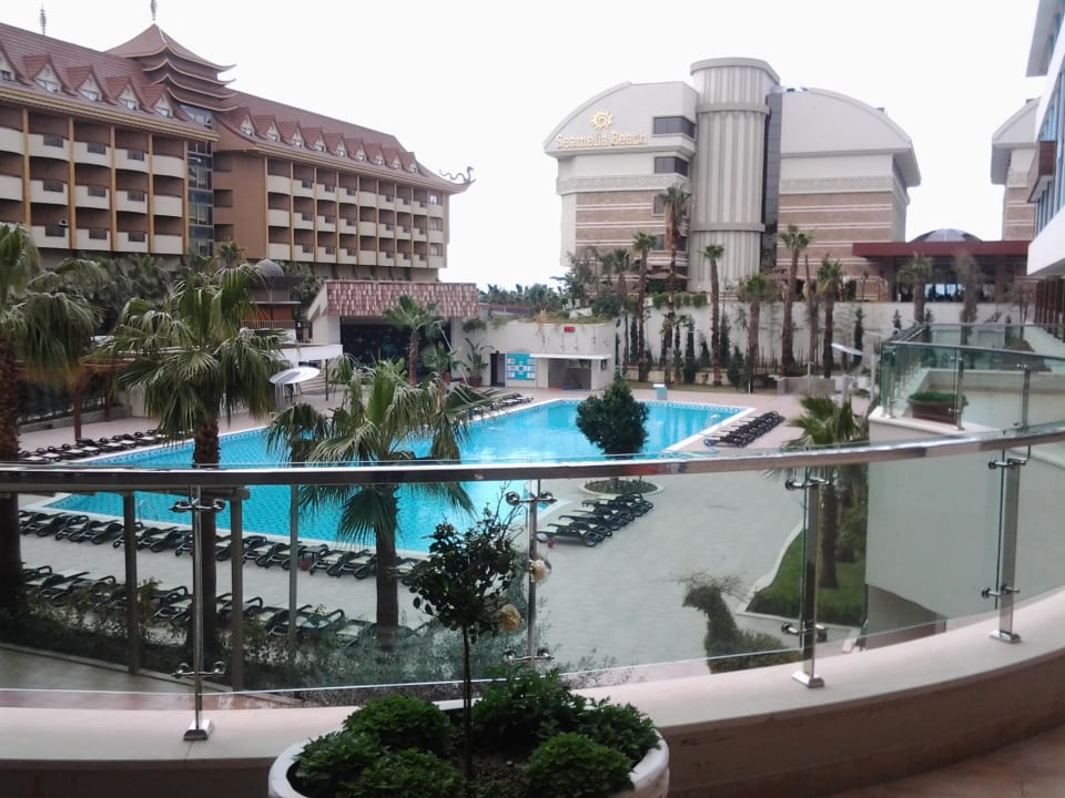Blick vom Lobbybalkon zum Pool