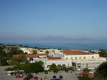 vorne das Royal mit den roten Dächern dahinter das Beach