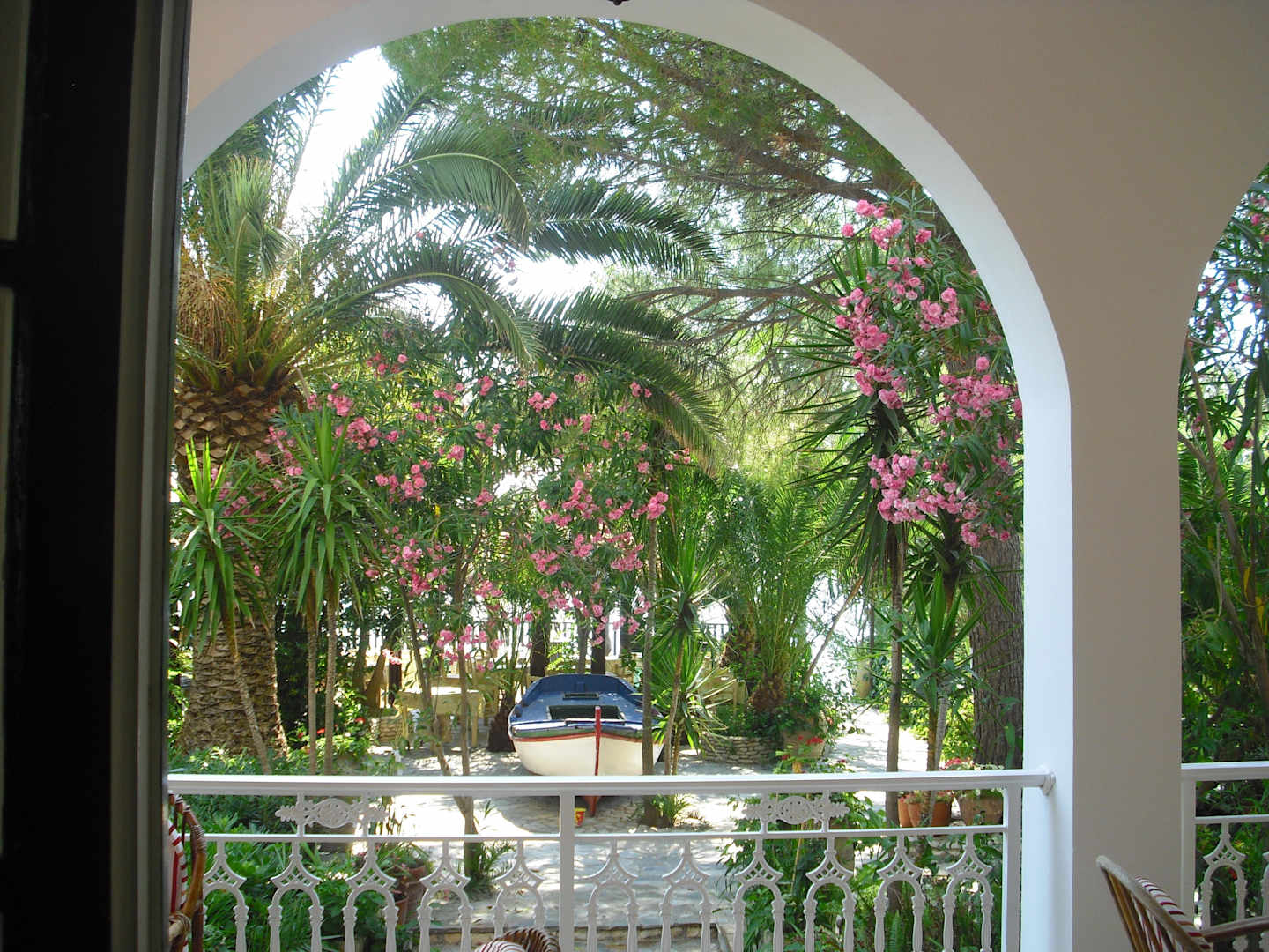 Schöner Ausblick vom Frühstücksraum in den Garten