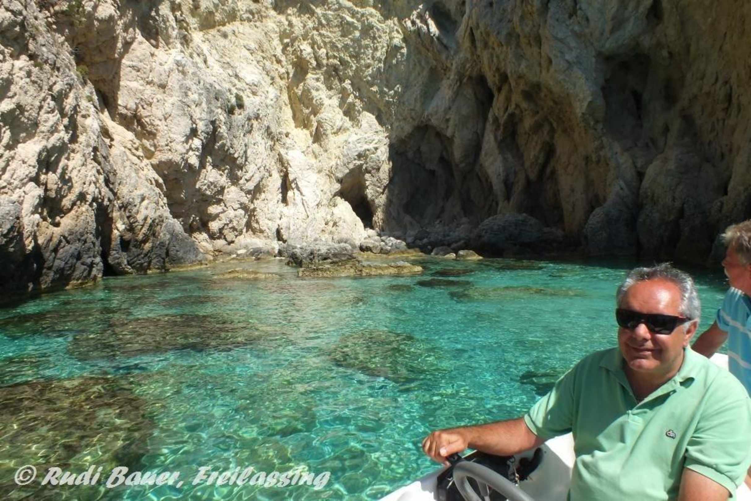 Pavlos fährt uns mit seinem Boot zur Insel Marathonissi und einmal rundherum. Danke Pavlos.
