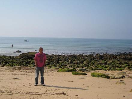 Das Foto zeigt den Strandabschnitt, den man von der Holztreppe aus erreicht. Der eigentliche kilometerlange Sandstrand führt von hier aus über einige große Steine.