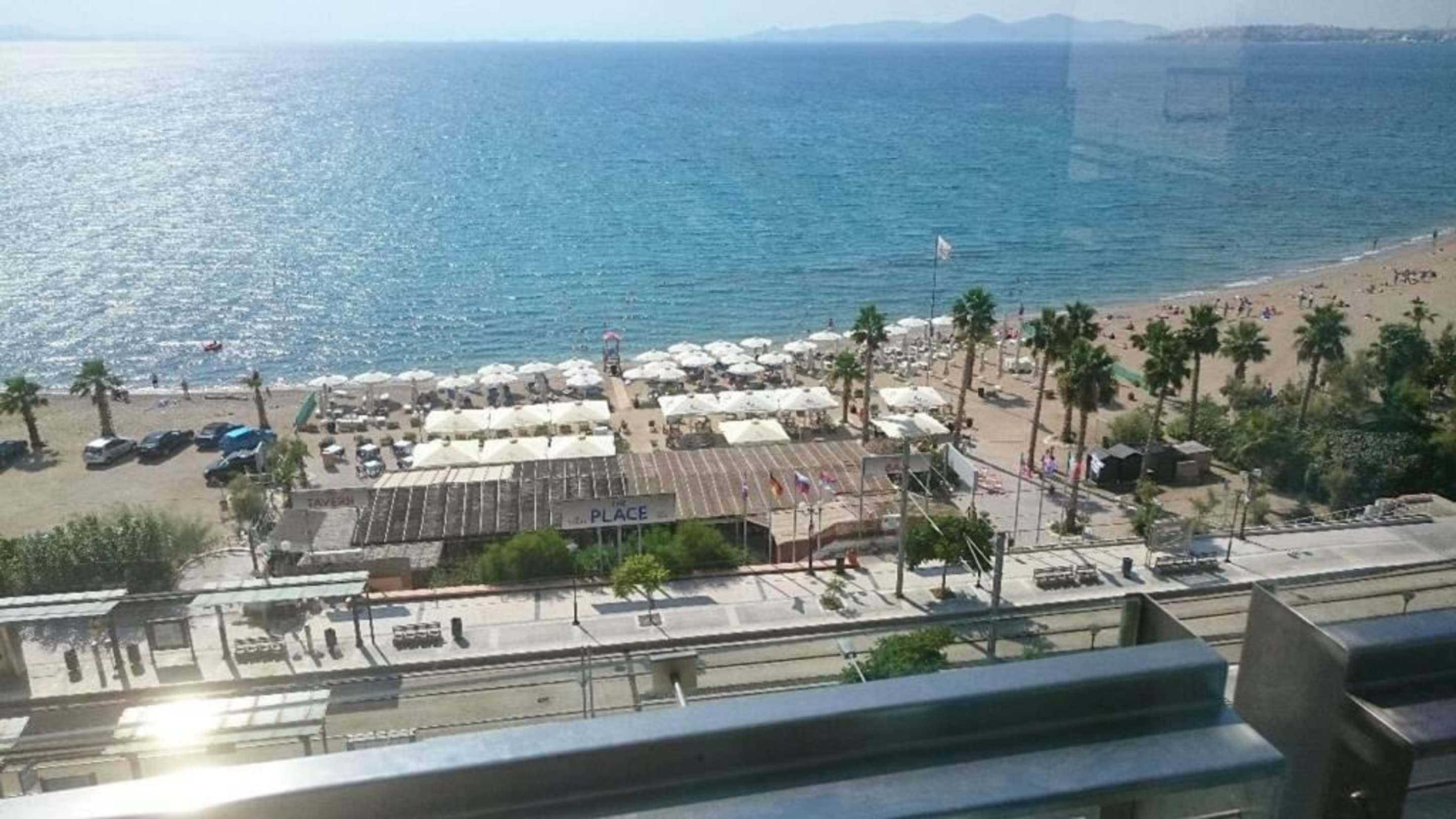 Blick vom Restaurant auf den Hotelstrand