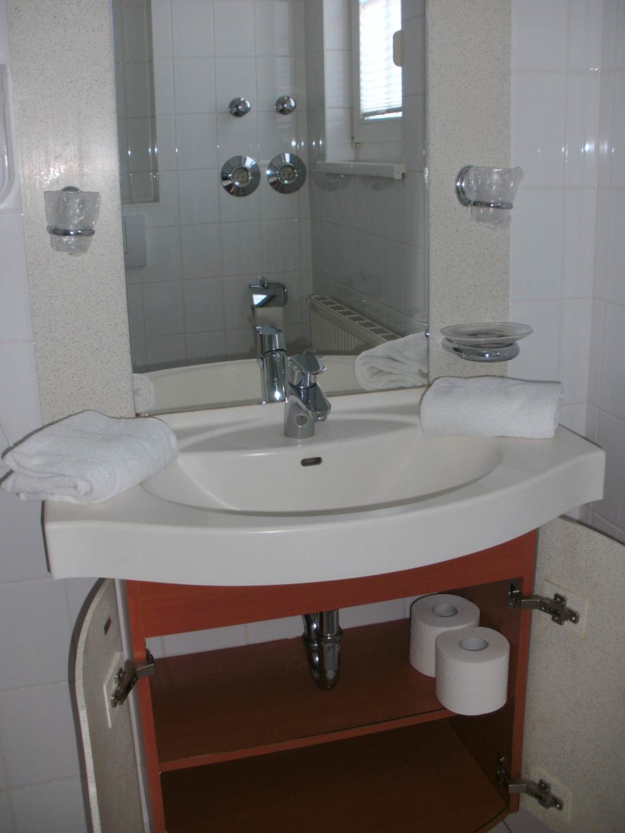 Blick zum Bad mit Dusche im Wohnbereich