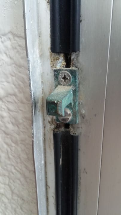 Der verschmutzte Verschluß der Balkontür
