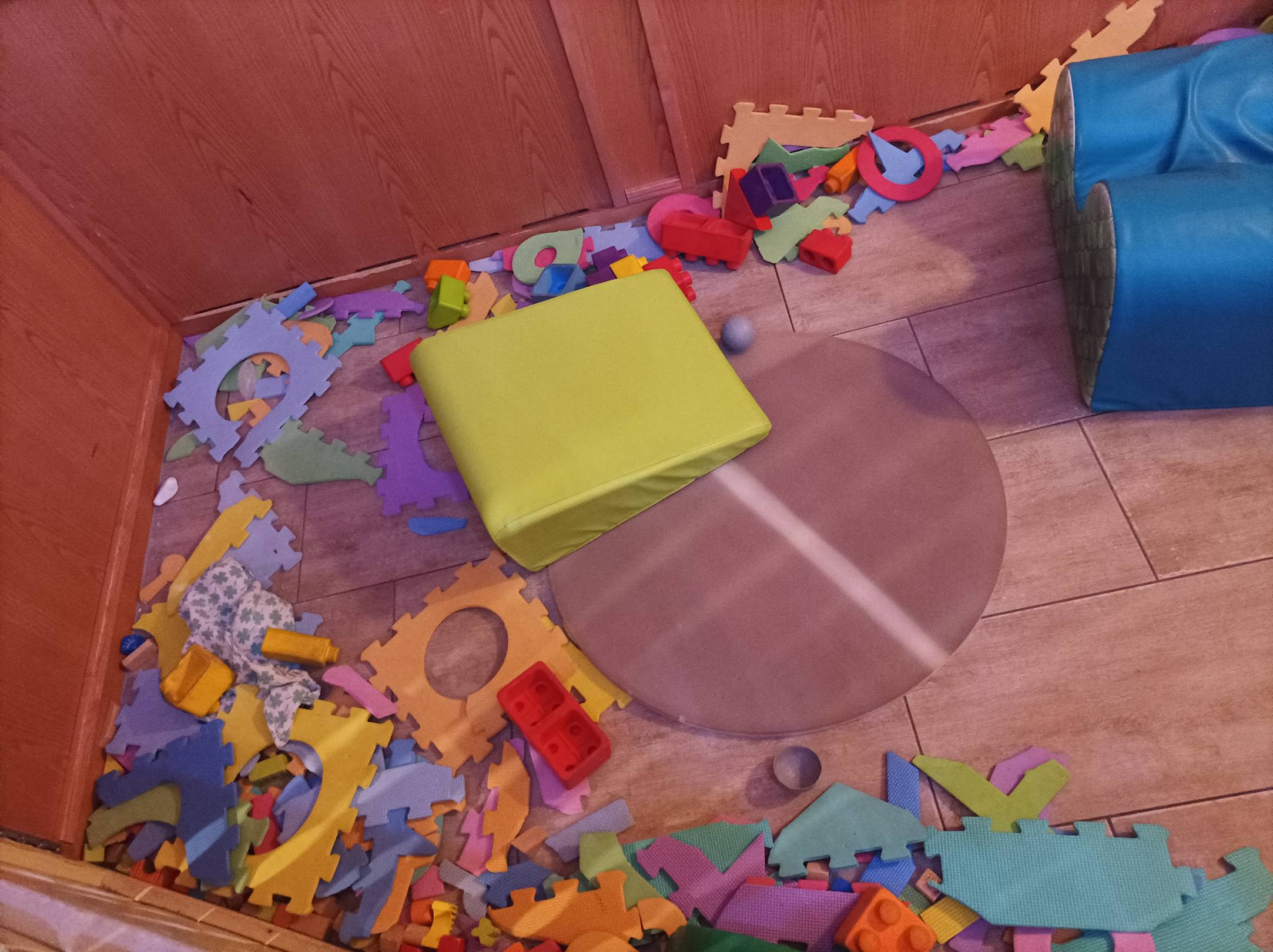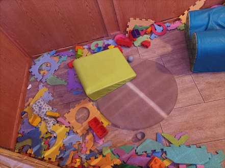 Die Spielecke für Kinder im Restaurant, alles alt, zerrissen und abgenutzt