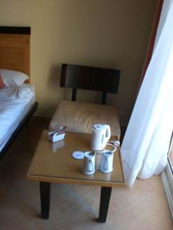 Sogar mit Wasserkocher, verschiedene Teesorten, Kaffe, Zucker...