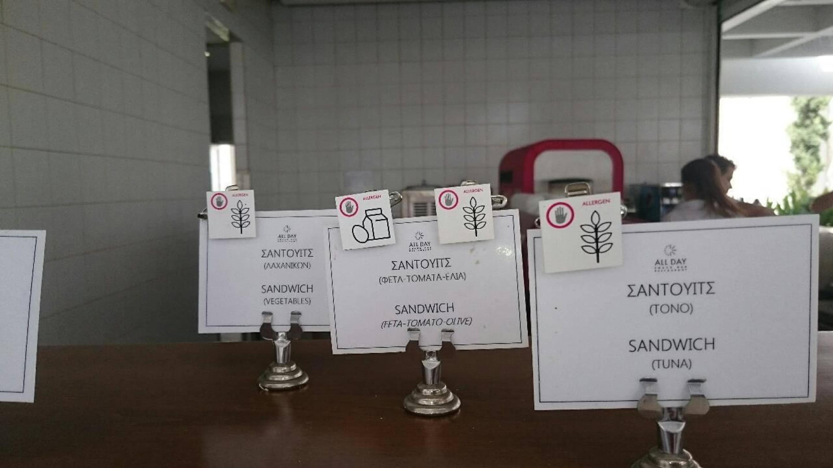 Allergieinformation an der SpeiseDie kleinen Schildchen oben zeigen zusammen mit der Legende die enthaltenen Allergene an.