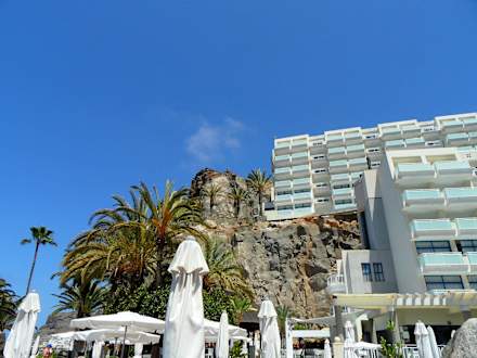 Blick von der Poolanlage zum Hotel