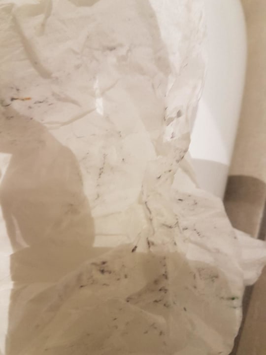 So sah das weiße Tuch nach einmaligem Abwichen der Toilettenbrillte aus.
