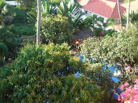 Vom Balkon Richtung Garten/Pool