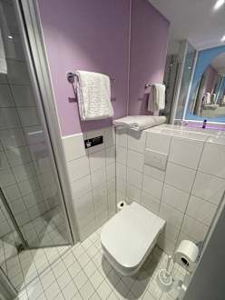Bad mit WC und Handtüchern.
