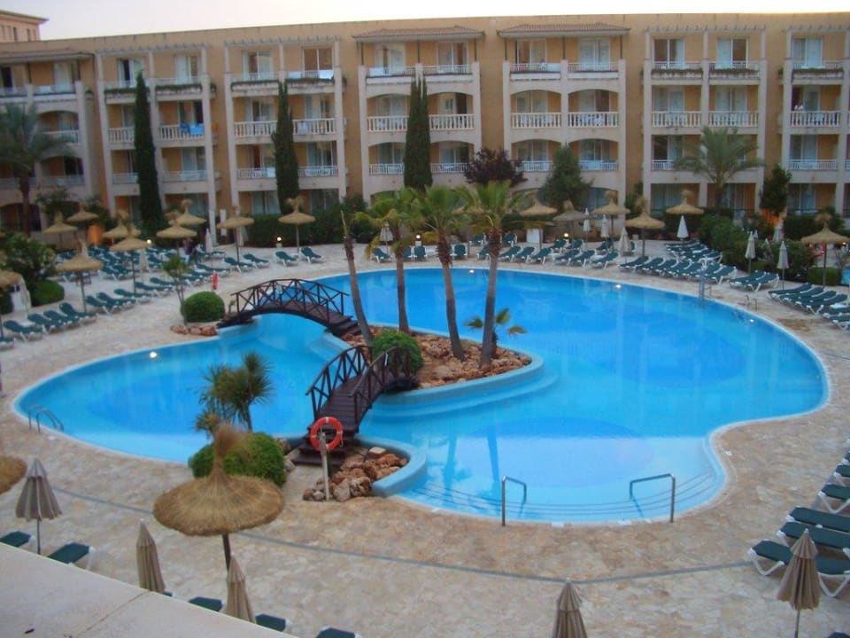 Hier der Blick von unserem Balkon auf die Anlage, in deren Mitte die Poollandschaft ist.