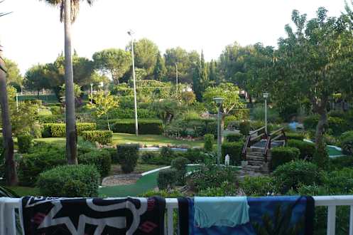 Balkon mit Sicht auf den Minigolf Park