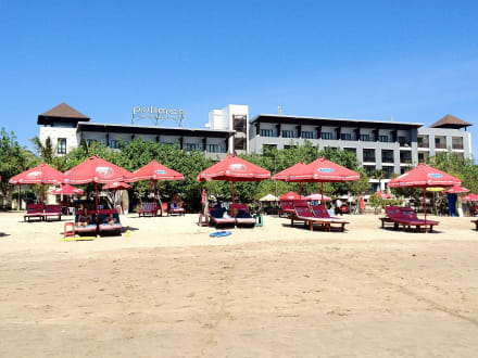Blick auf das Hotel vom Strand aus
