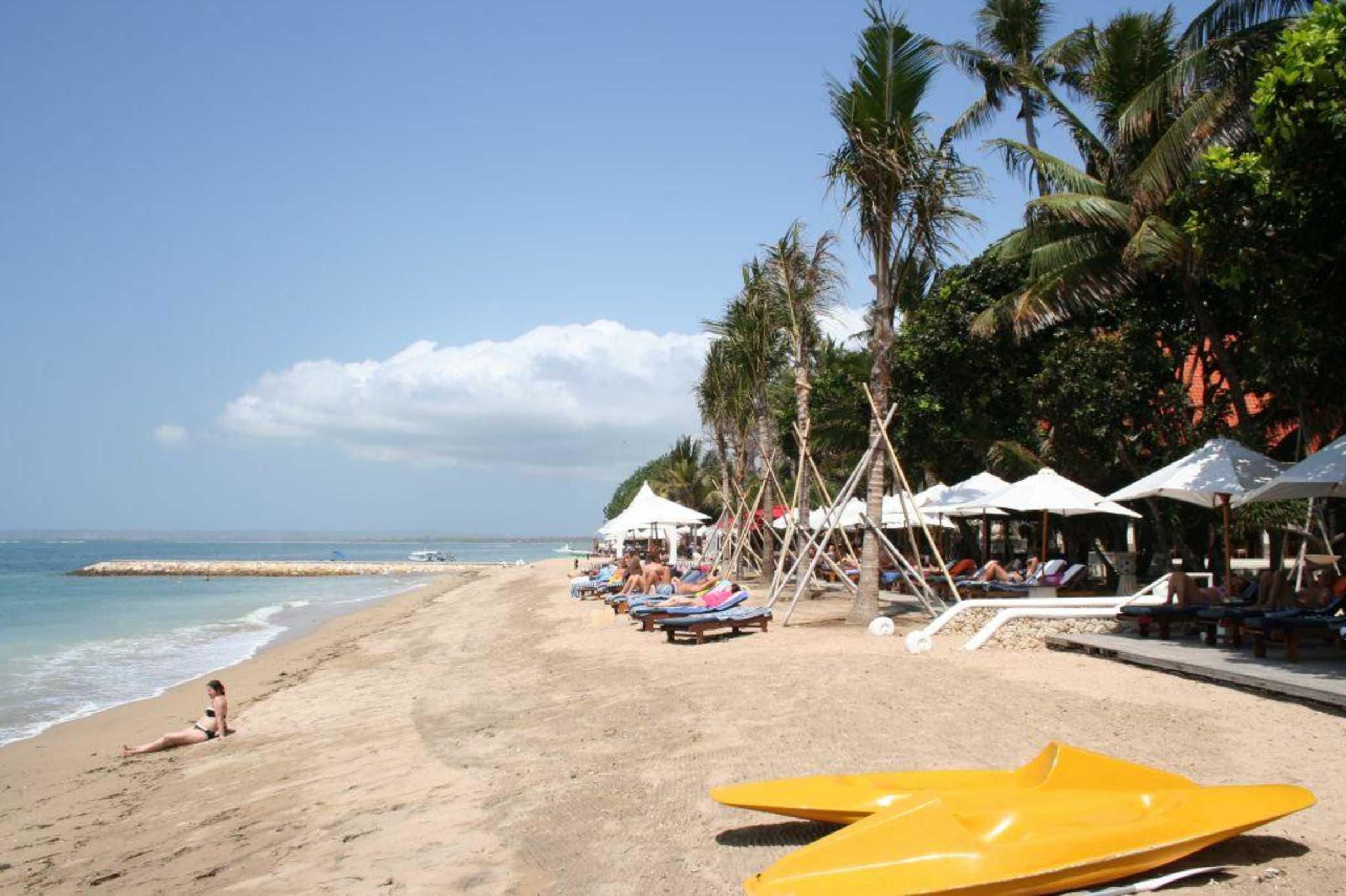 Am Hotelstrand des Puri Santrian. Wer genau hinschaut, wird vielleicht auch ein wenig Seegras entdecken. Das personal war jedenfalls bemüht, den Strand so sauber wie möglich zu halten.