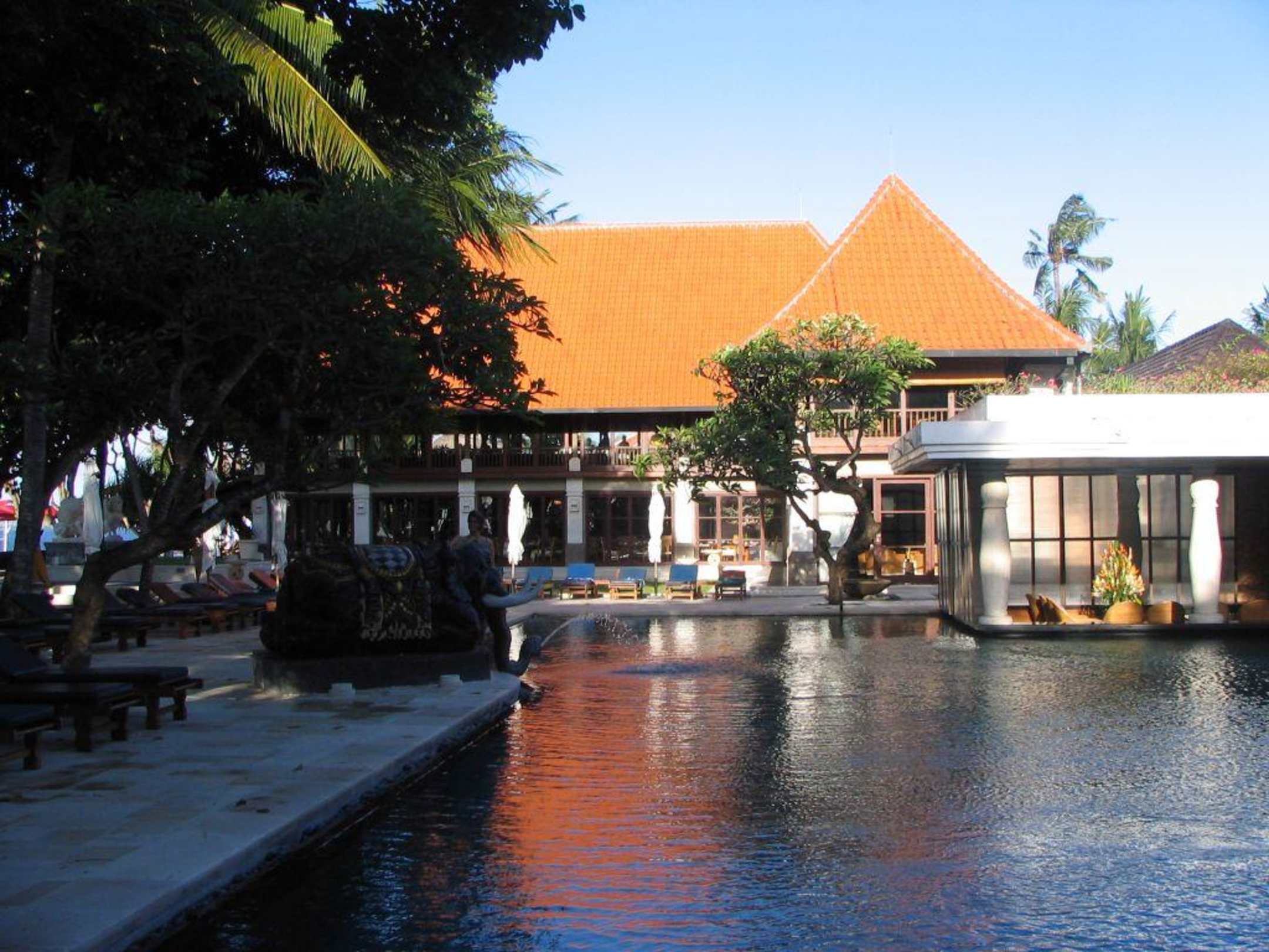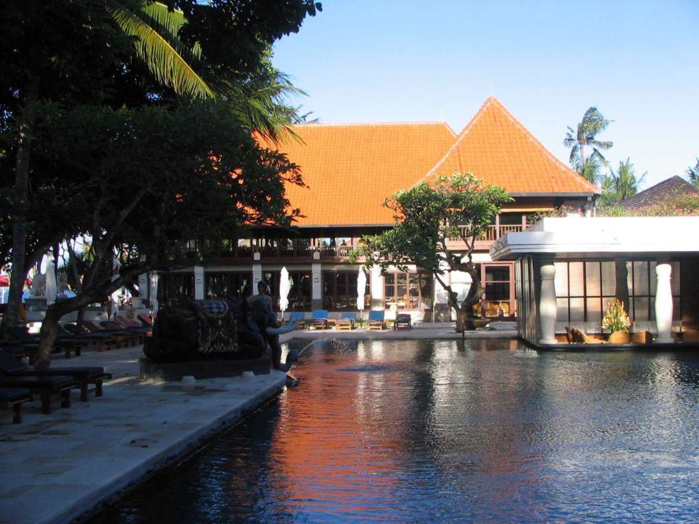 einer der Pools mit Blick auf das Restaurant