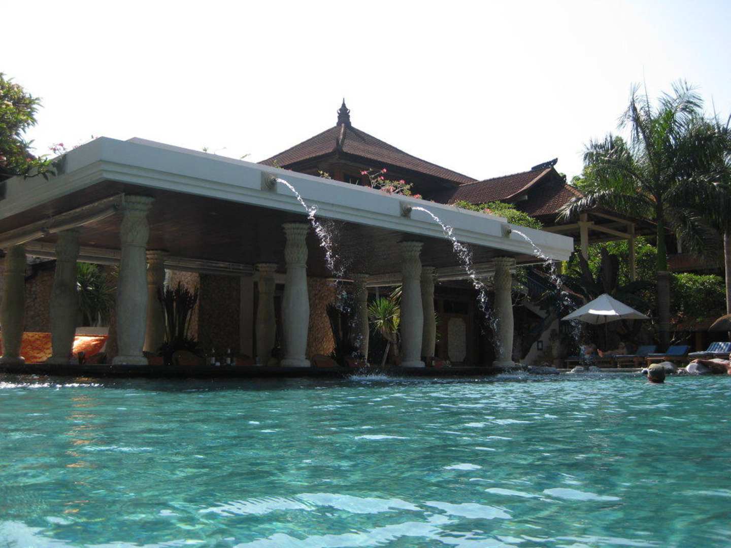 Blick von unserer Liege aus auf den Pool inklusive Poolbar.