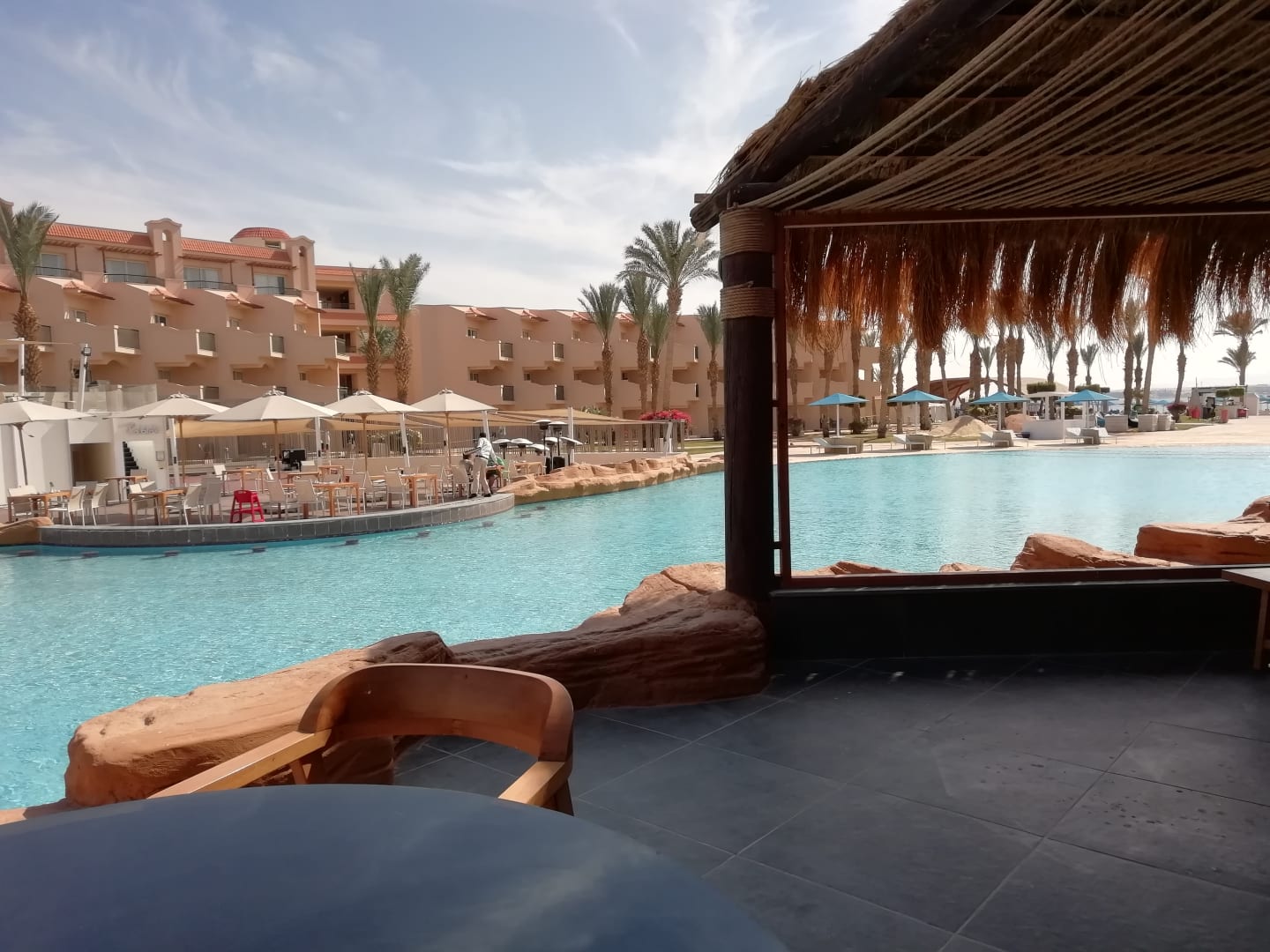 Blick von der Poolbar aus auf ein Themenrestaurant italienisch.