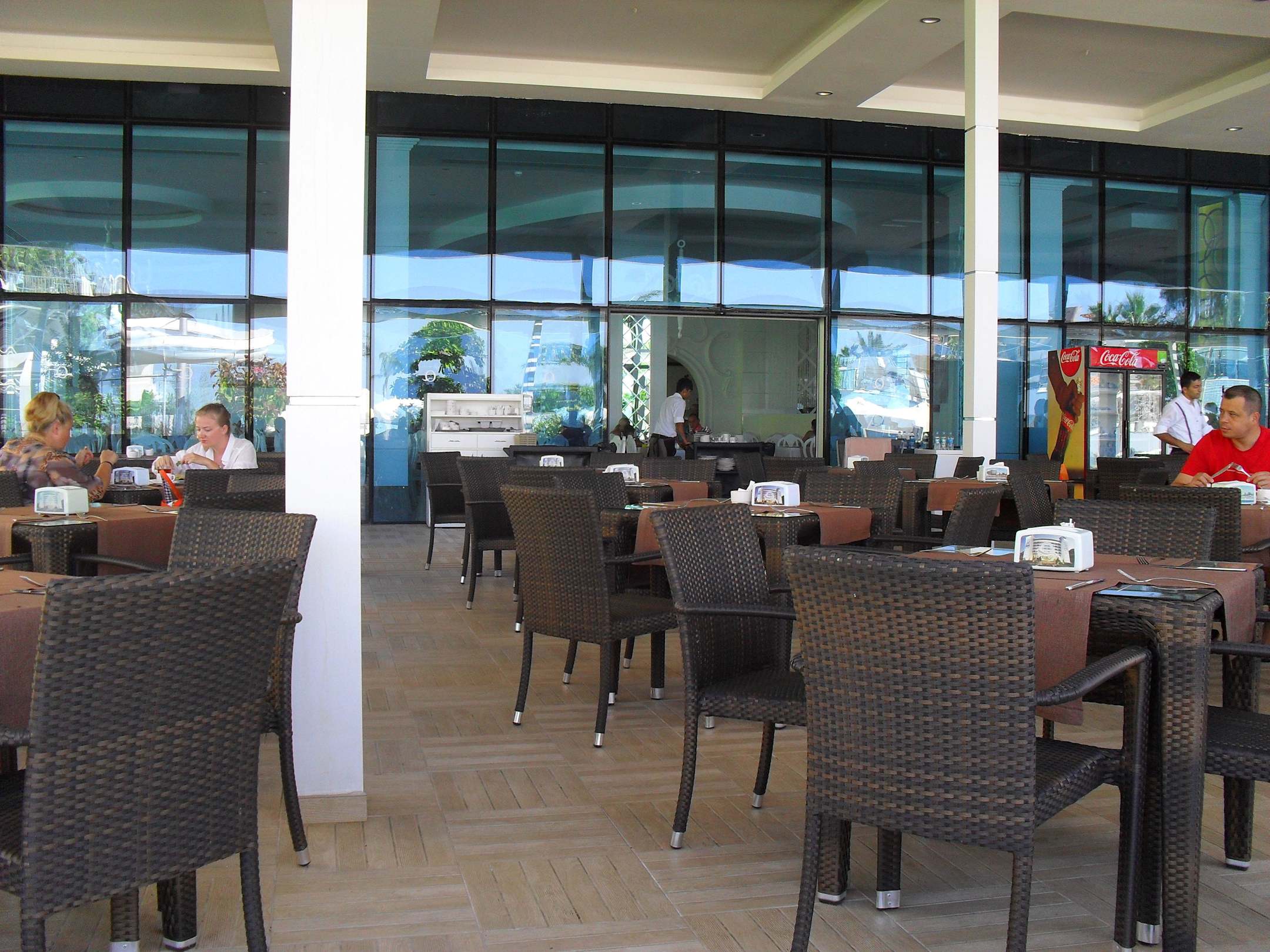 Restauranterrasse Blick auf den Aussenbereich des Hauptrestaurants zur Frühstückszeit. Hier sitzt man am Besten ;)