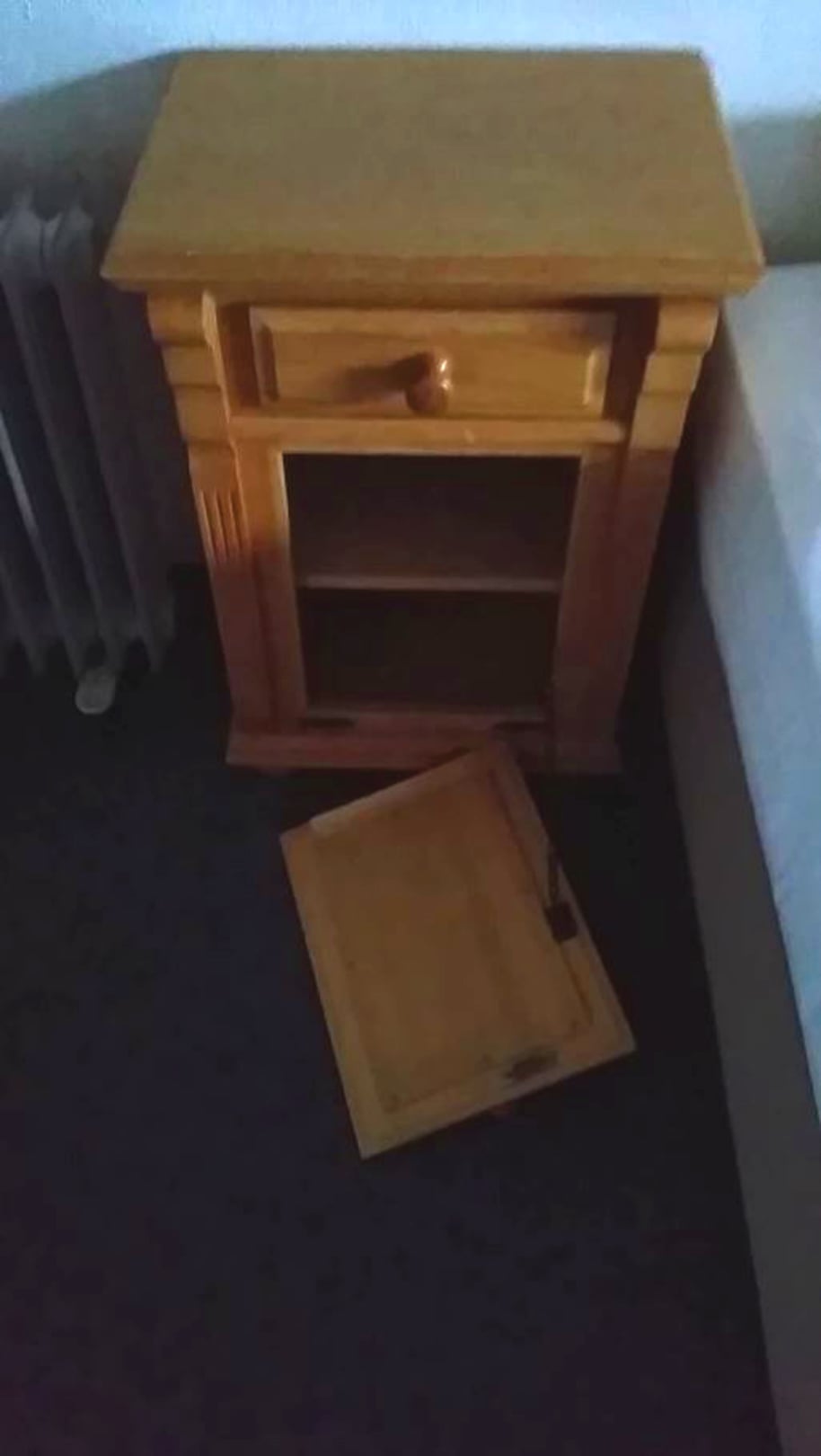 Nachttischschränkchen, aus dem die Tür einfach rausfällt