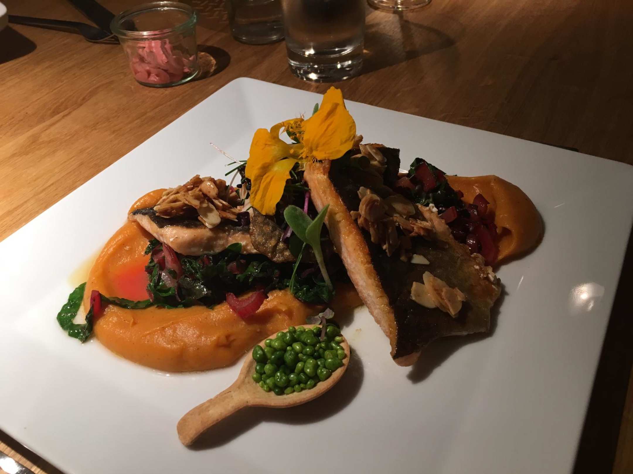 Saibling an Süßkartoffelpüree