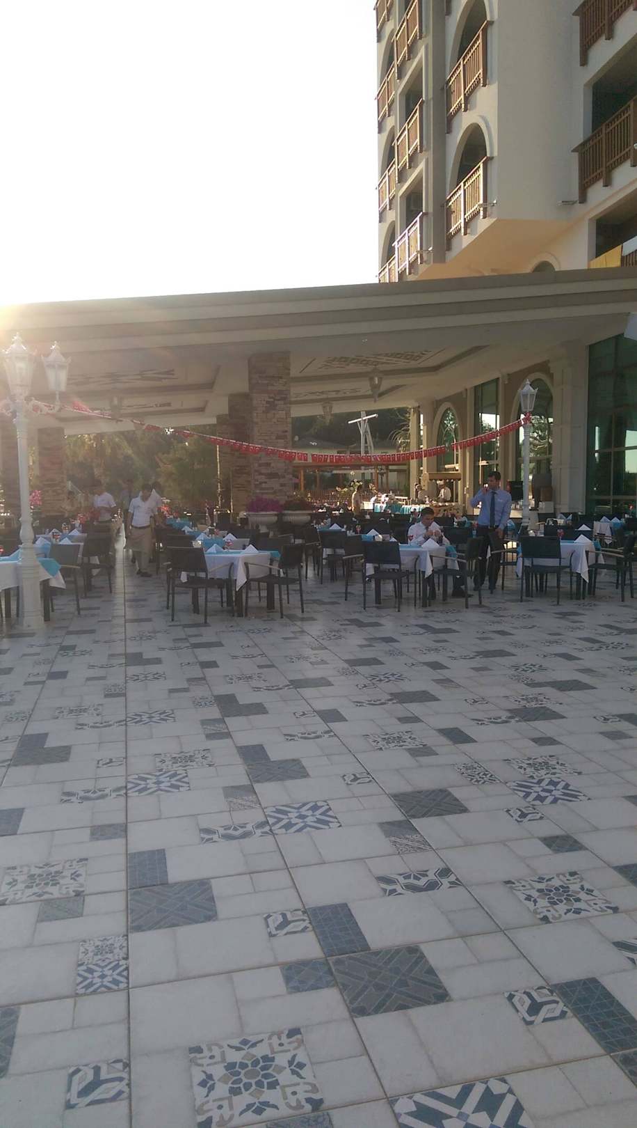 Sitzmöglichkeiten vom Hauptrestaurant draußen