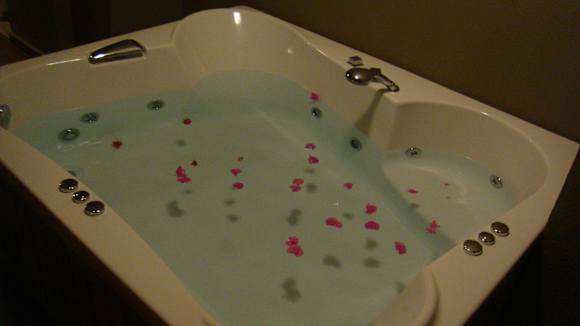 Kwiatki w jacuzzy pozostawione przez sprzątaczkę.