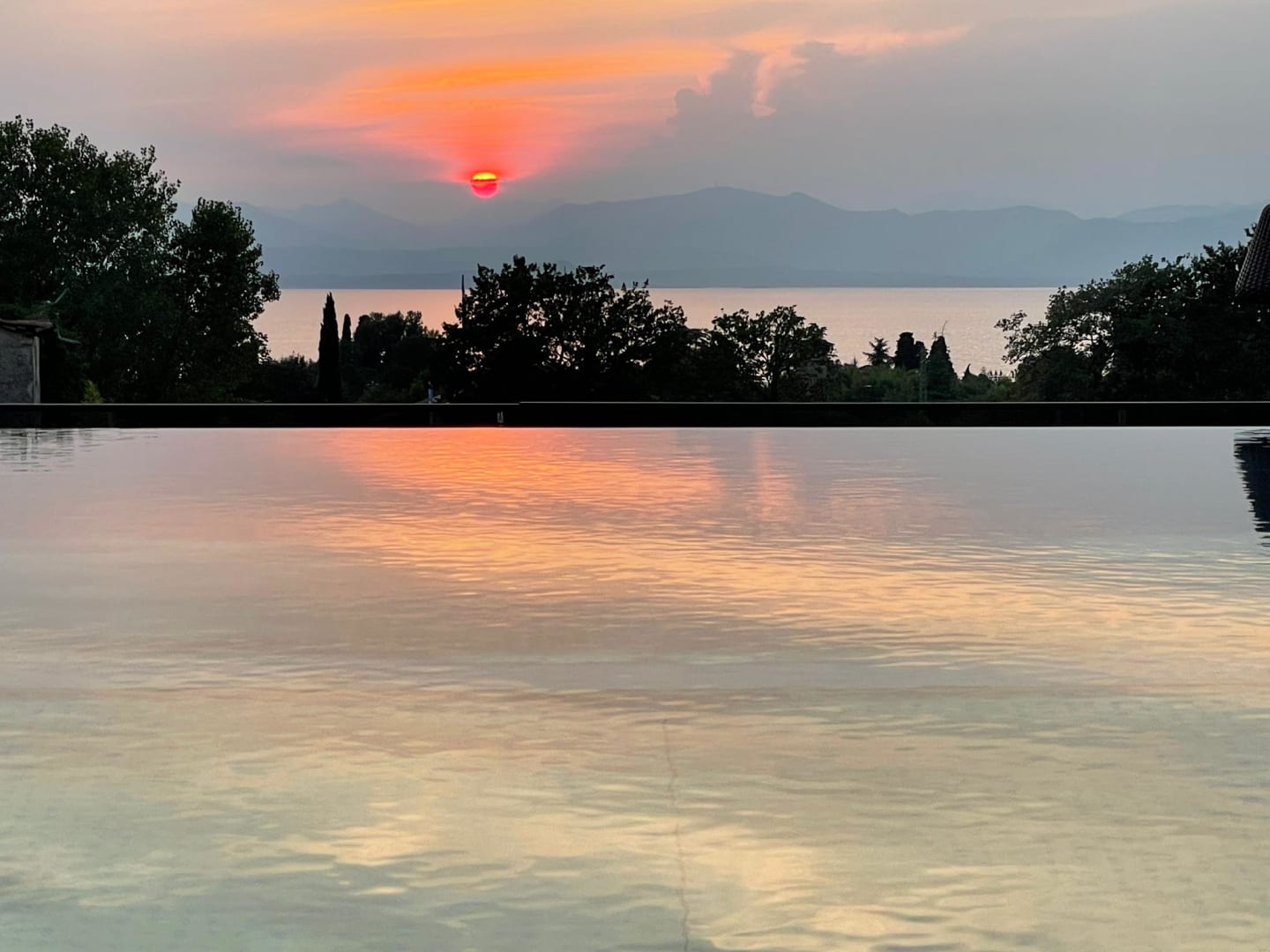 Sonnenuntergang vom Skypool (für Erwachsene) und Ausblick auf den Gardasee